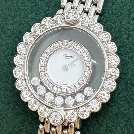 大黒屋 買取 > ブランド買取 > 腕時計買取 > ショパール買取 ショパールの腕時計は、1860年創業のスイス時計技術とジュエリーの華やかさを融合した高級ブランドです。ハッピーダイヤモンドやハッピースポーツの可動ダイヤをはじめ、ミッレミリア、L.U.C.など人気ラインは国内外で高い需要があり、高価買取の対象となっています。大黒屋ではモデルの希少性、素材、付属品、状態等を総合的に評価し、最新相場に基づく高額査定をご提示いたします。眠っているショパール時計がございましたら、ぜひ無料査定をご利用ください。 ショパール時計買取実績こちらは買取日時点での大黒屋店頭または宅配、出張での買取実績となります。同一商品であっても、状態や保証書・付属品の有無、各店舗の取扱状況などによって買取価格は変わる場合がございます。お持込み予定の店舗へご連絡いただければ、お品物の状態等を確認させていただき、実際の買取額に近い価格をお伝えできますので、お気軽にお問合せください。 2025年11月12日 ショパールハッピースポーツ 27/8892-23 買取参考価格 80,000円 2025年11月9日 ショパールアルパンイーグル 298600-3001 買取参考価格 1,050,000円 2025年10月10日 ショパールハッピーダイヤモンド 4097 買取参考価格 680,000円 2025年9月27日 ショパールクラシック ベゼルダイヤ 10/6560/04 買取参考価格 1,390,000円 2025年9月25日 ショパールアルパインイーグル 298600-3001 買取参考価格 1,100,000円 2025年9月11日 ショパールハッピーダイヤ 20/3926 買取参考価格 220,000円 2025年9月3日 ショパールミッレミリア 16/8511 買取参考価格 200,000円 2025年8月24日 ショパールハッピースポーツ 27/8245-23 買取参考価格 100,000円 もっと見る 最新の査定目安額を知りたい方は お電話一本で丁寧にご対応します! 0120-188-153 電話受付 10:00~18:00 タップすると電話がかかります お電話一本で丁寧にご対応します! 0120-188-153 電話受付 10:00~18:00 最短1分で回答いたします! 最短1分で回答いたします! かんたんLINE査定 写真を送るだけでお試し査定 ご相談・手続きすべて無料 査定目安金額をお伝えします ご売却までの流れを説明します その他のショパール時計買取実績 ショパール中古買取参考価格 更新日:2025/12/03 モデル名 型番 中古品買取価格 20/3957-0001 ハッピーダイヤモンド 285,000円 20/3957-1001 ハッピーダイヤモンド 232,000円 27/8475 ハッピースポーツ 215,000円 27/8298 ハッピースポーツ 216,000円 27/8892-21 ハッピースポーツ 94,000円 27/8892-23 ハッピースポーツ 109,000円 27/8582-3001 ハッピースポーツ 269,000円 28/8507 ハッピースポーツ 118,000円 ※上記買取参考例は宅配買取限定価格となり、店頭買取価格とは異なります。実際の買取価格は相場や弊社在庫等により変動いたします。 時計の売却方法 家から出ないで手続終了宅配買取 自宅へ査定員がお伺いします出張買取 ※店舗へのお持込みの際は店舗毎に買取条件等が異なりますので、直接各店までお問い合わせください。 ショパール買取強化モデル ハッピーダイヤモンドHappy Diamonds ハッピースポーツHappy Sport アルパインイーグルAlpine Eagle ミッレミリアMille Miglia クラシックClassic クラシックレーシングClassic Racing スーパーファストSuperfast インペリアーレImperiale L.U.CL.U.C ルールドゥディアマンL'Heure du Diamant グランプリ モナコヒストリックGrand Prix De Monaco Historique カジノCasino 腕時計買取強化ブランド ロレックスROLEX オーデマピゲAudemars Piguet パテックフィリップPatek Philippe オメガOMEGA カルティエCartier セイコーSEIKO ヴァシュロンコンスタンタンVacheron Constantin チューダーTUDOR ウブロHUBLOT ブルガリBVLGARI シャネルCHANEL パネライPANERAI ブレゲBreguet IWCInternational Watch Company ブライトリングBREITLING ランゲ&ゾーネA.LANGE & SOHNE ピアジェPiaget フランクミュラーFRANCK MULLER ハリーウィンストンHARRY WINSTON タグホイヤーTAG Heuer ゼニスZENITH ジャガールクルトJaeger-LeCoultre FPジュルヌF.P.Journe ショパールChopard ロジェデュブイRoger Dubuis 大塚ローテックŌTSUKA LŌTEC ロンジンLongines エルメスHERMES ティファニーTiffany & Co. ブランパンBLANCPAIN 腕時計買取のお客様の声 LINE査定の流れ 時計の売却方法 家から出ないで手続終了宅配買取 自宅へ査定員がお伺いします出張買取 ※店舗へのお持込みの際は店舗毎に買取条件等が異なりますので、直接各店までお問い合わせください。 腕時計買取強化ブランド ロレックスROLEX オーデマピゲAudemars Piguet パテックフィリップPatek Philippe オメガOMEGA カルティエCartier セイコーSEIKO ヴァシュロンコンスタンタンVacheron Constantin チューダーTUDOR ウブロHUBLOT ブルガリBVLGARI シャネルCHANEL パネライPANERAI ブレゲBreguet IWCInternational Watch Company ブライトリングBREITLING ランゲ & ゾーネA.LANGE & SOHNE ピアジェPiaget フランクミュラーFRANCK MULLER ハリーウィンストンHARRY WINSTON タグホイヤーTAG Heuer ゼニスZENITH ジャガールクルトJaeger-LeCoultre FPジュルヌF.P.Journe ショパールChopard ロジェデュブイRoger Dubuis 大塚ローテックŌTSUKA LŌTEC ロンジンLongines エルメスHERMES ティファ