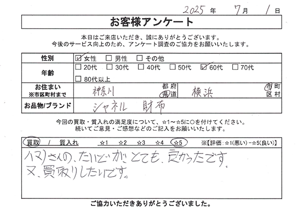質横浜買取センターのお客様の声