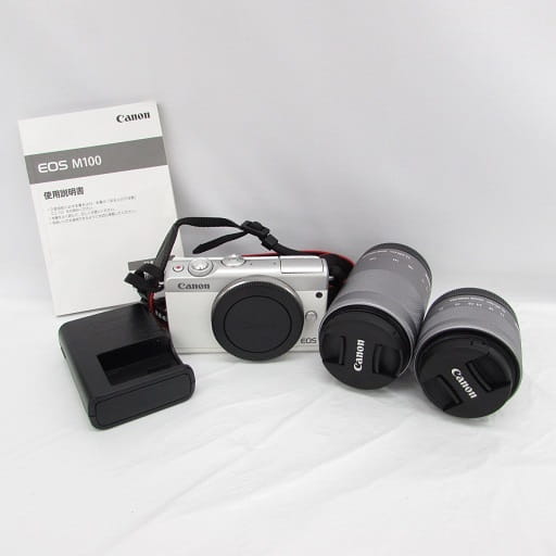 Canon キャノン ミラーレス一眼カメラ EOS M100 レンズ2本(15-45mm/55-200mm)セット ホワイト 中古品