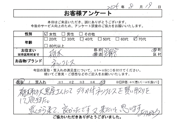 質栃木買取センターのお客様の声