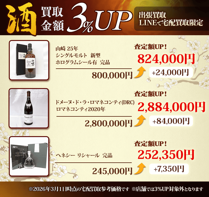 ※チケット・金券類、電化製品(カメラ・レンズを除く)・スマートフォンはLINE査定対象外となりますので、予めご了承下さい。