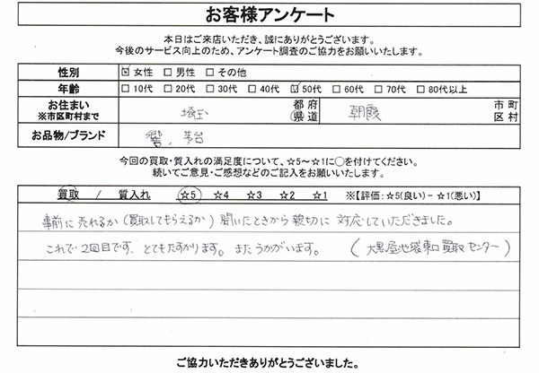 質池袋東口買取センターのお客様の声