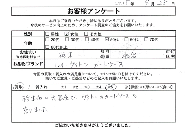 質栃木買取センターのお客様の声