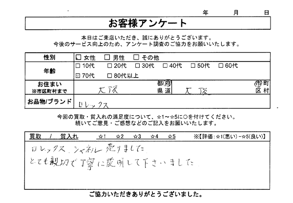 ブランド館 梅田店のお客様の声