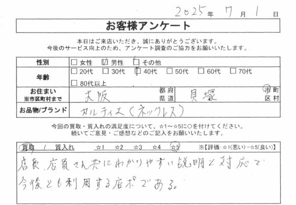 この度は大黒屋ブランド館 心斎橋大丸前店にてカルティエのネックレスをご売却いただき、誠にありがとうございます。