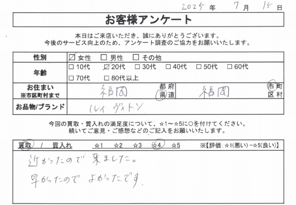 この度は、大黒屋ブランド館 福岡店をご利用いただきありがとうございます。