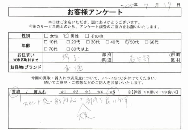 この度は大黒屋 春日部店をご利用頂きまして誠にありがとうございます。