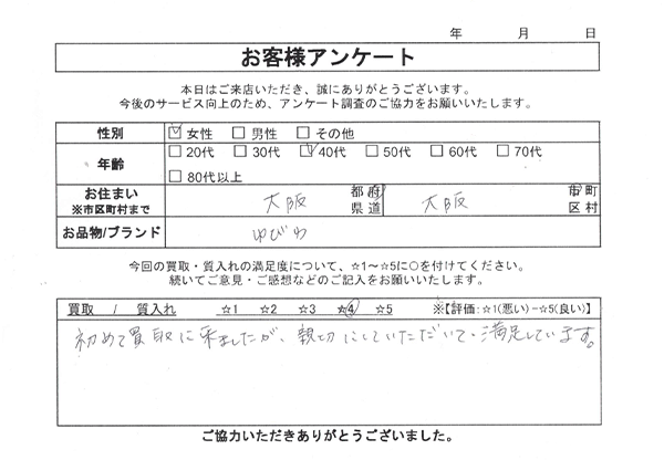 初めて買取に来ましたが、親切にしていただいて満足しています。