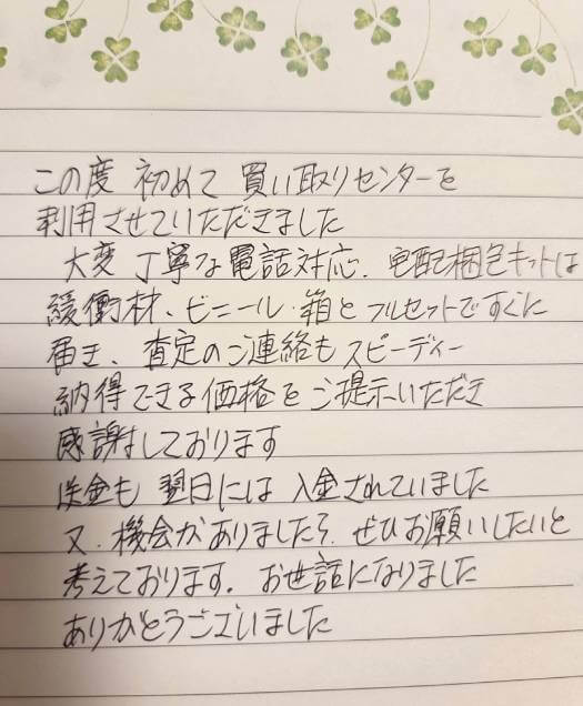 この度初めて買い取りセンターを利用させていただきました