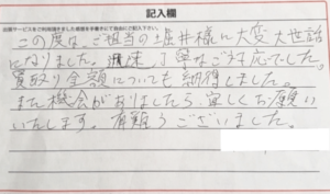 はじめは不安でしたが、しっかりとした値段もつけていただき、誠に感謝しております。