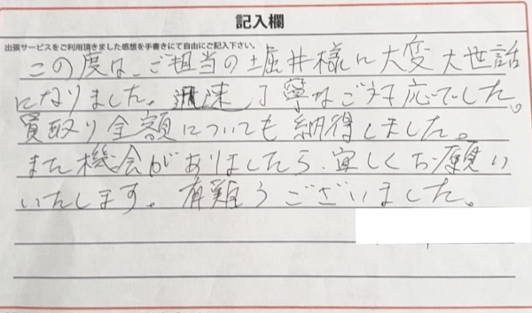 買取り金額についても納得しました。